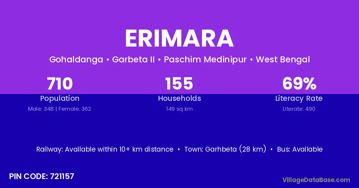 Garhbeta (28 km) is the nearest town to Erimara village for major economic activities and is located approximately 28 km away.