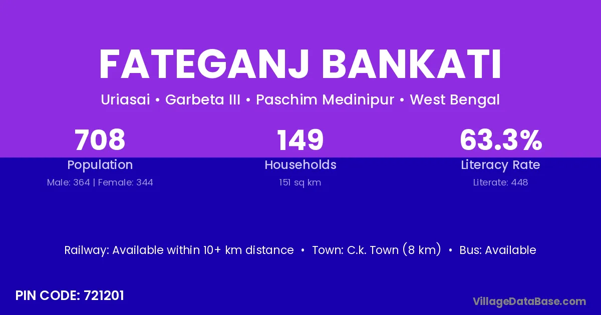 According to Census 2011 information, the village code of Fateganj Bankati village is 721201.