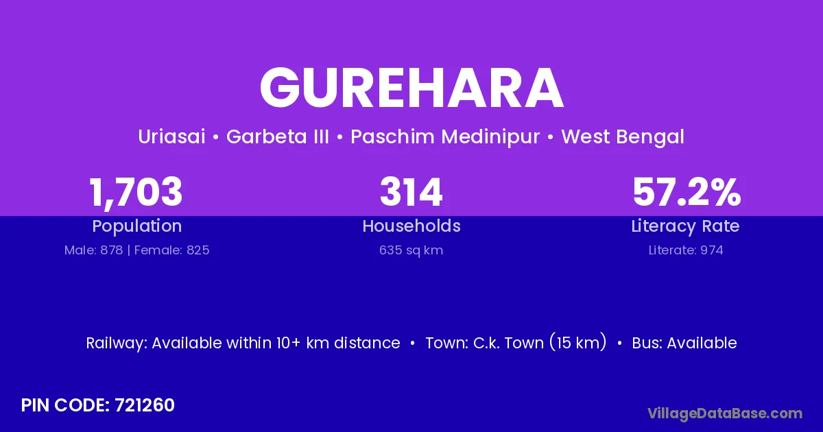 According to Census 2011 information, the village code of Gurehara village is 721260.