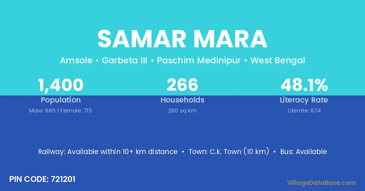 According to Census 2011 information, the village code of Samar Mara village is 721201.