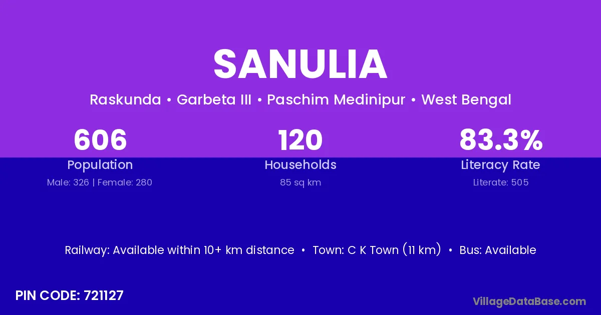 C K Town (11 km) is the nearest town to Sanulia village for major economic activities and is located approximately 11 km away.