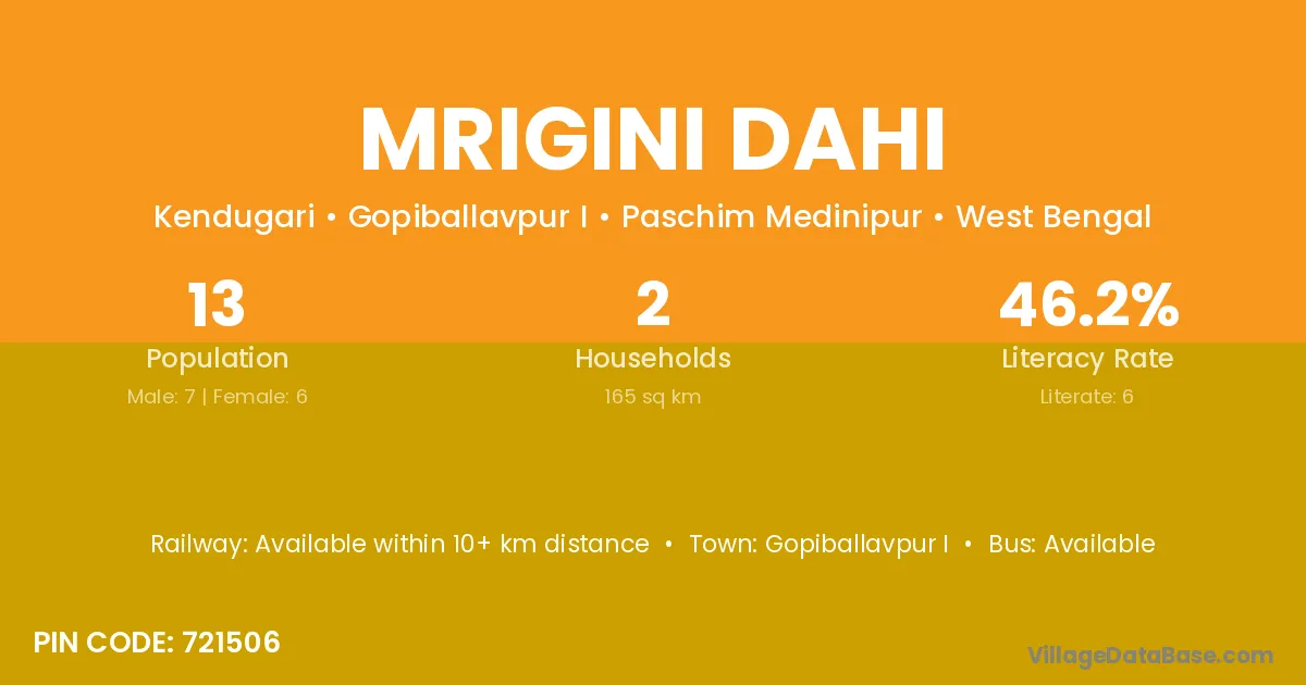 According to Census 2011 information, the village code of Mrigini Dahi village is 721506.