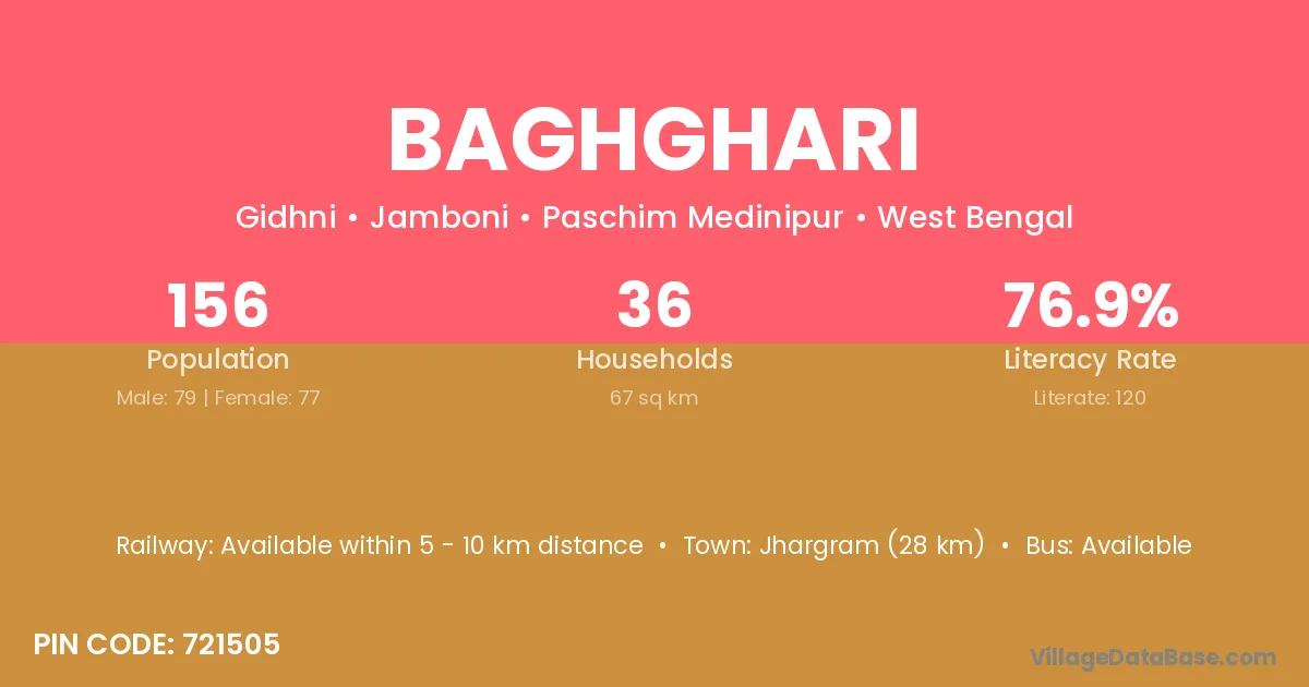 Baghghari village is located in the Jamboni Subdivision of the Paschim Medinipur district in West Bengal.