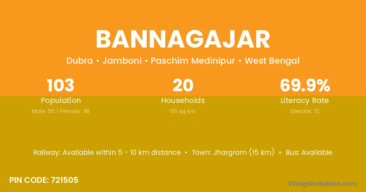 Bannagajar village is located in the Jamboni Subdivision of the Paschim Medinipur district in West Bengal.