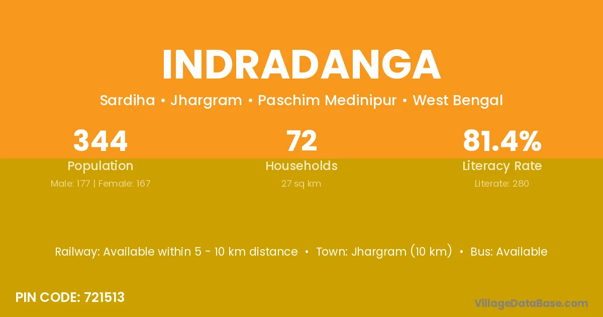 Jhargram (10 km) is the nearest town to Indradanga village for major economic activities and is located approximately 10 km away.