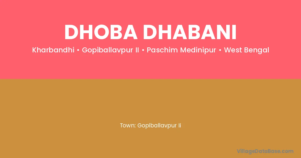 Jhargram (10 km) is the nearest town to Dhoba Dhabani village for major economic activities and is located approximately 10 km away.
