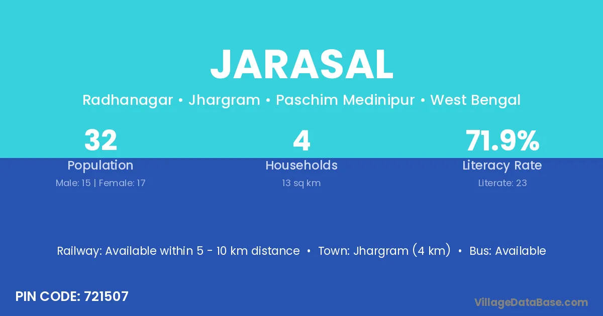 Jhargram (4 km) is the nearest town to Jarasal village for major economic activities and is located approximately 4 km away.