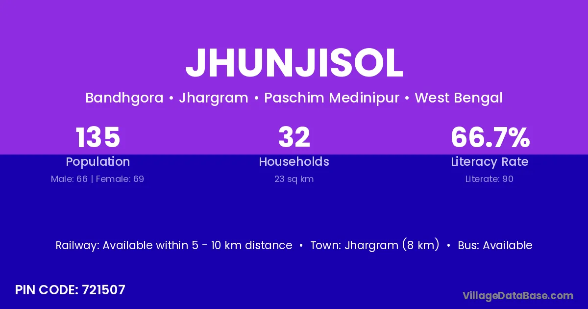 Jhargram (8 km) is the nearest town to Jhunjisol village for major economic activities and is located approximately 8 km away.