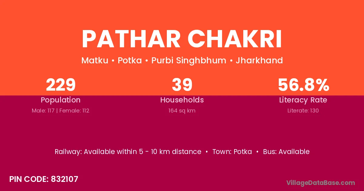 Jhargram (10 km) is the nearest town to Pathar Chakri village for major economic activities and is located approximately 10 km away.