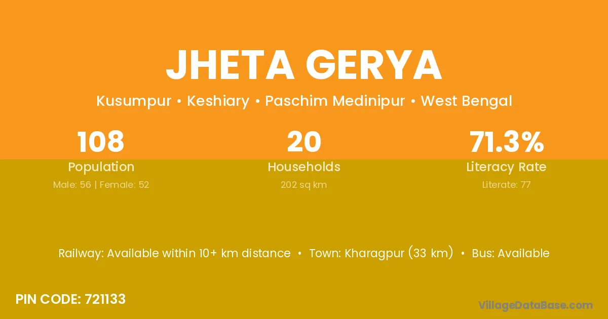 Jheta Gerya village is located in the Keshiary Subdivision of the Paschim Medinipur district in West Bengal.