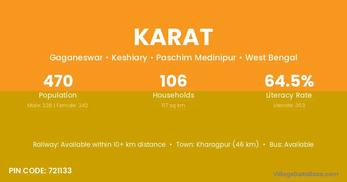 Karat village is located in the Keshiary Subdivision of the Paschim Medinipur district in West Bengal .