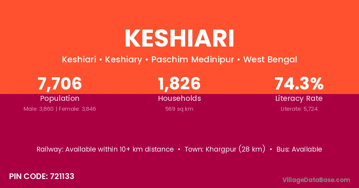 According to Census 2011 information, the village code of Keshiari village is 721133.