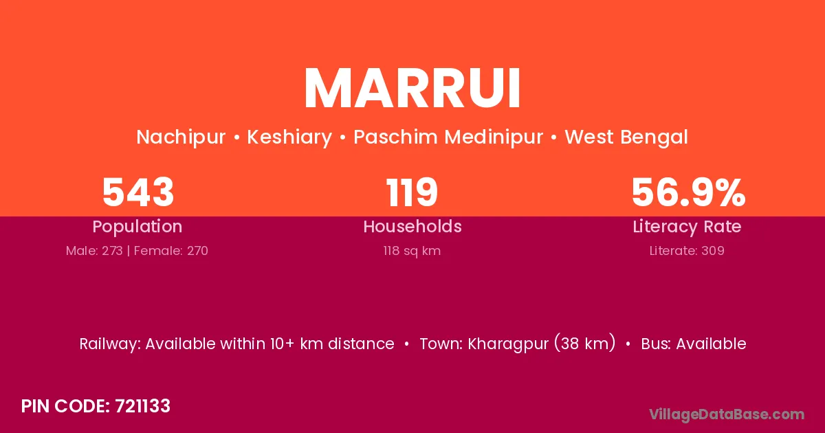 Kharagpur (38 km) is the nearest town to Marrui village for major economic activities and is located approximately 38 km away.