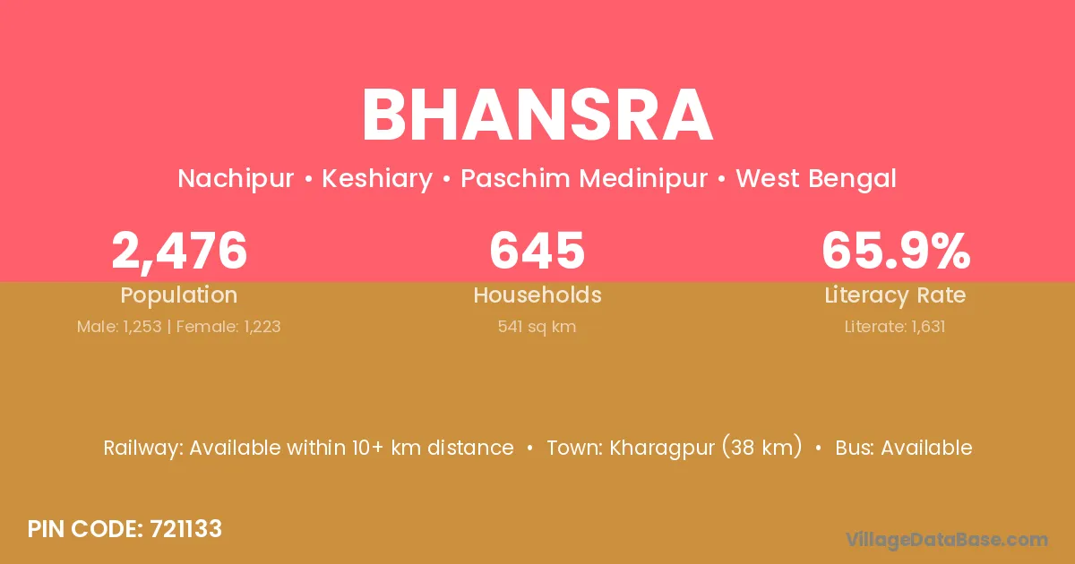Bhansra village is located in the Keshiary Subdivision of the Paschim Medinipur district in West Bengal .