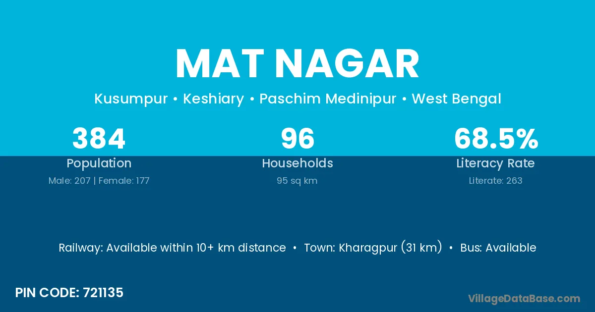 Mat Nagar village is located in the Keshiary Subdivision of the Paschim Medinipur district in West Bengal.