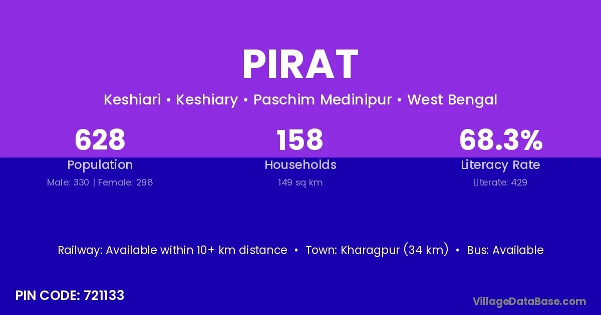 Pirat village is located in the Keshiary Subdivision of the Paschim Medinipur district in West Bengal .