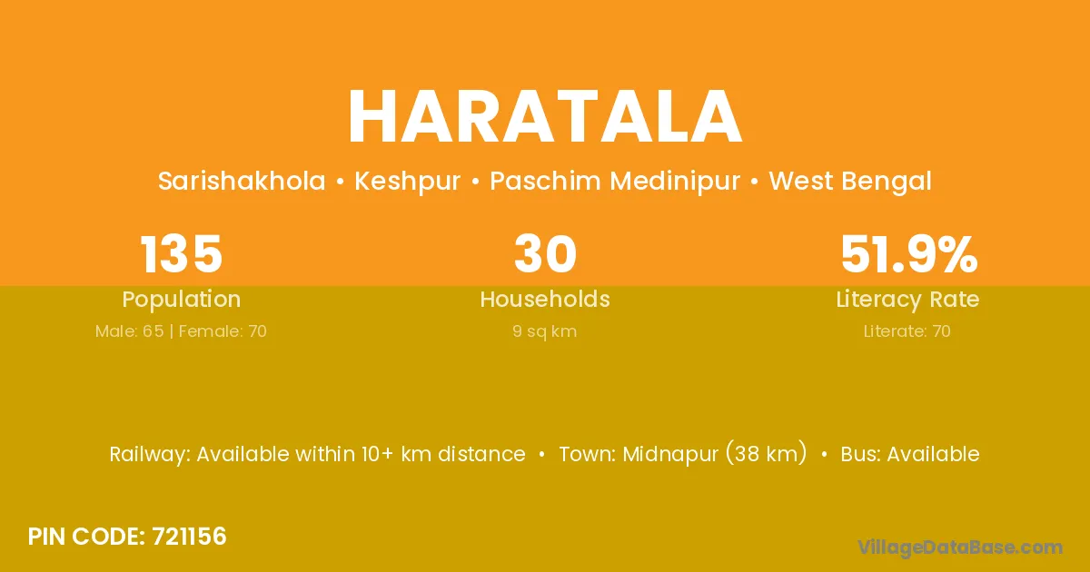 Midnapur (38 km) is the nearest town to Haratala village for major economic activities and is located approximately 38 km away.