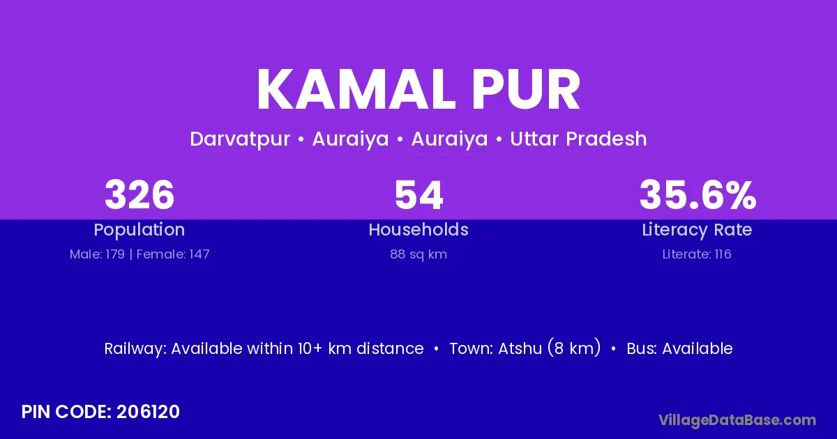 The literacy rate of Kamal Pur village is 80.10%. Male literacy stands at 87.50% and female literacy at 73.64%.