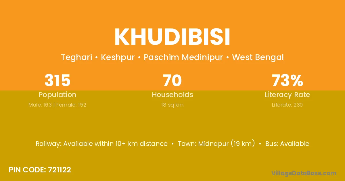 Midnapur (19 km) is the nearest town to Khudibisi village for major economic activities and is located approximately 19 km away.