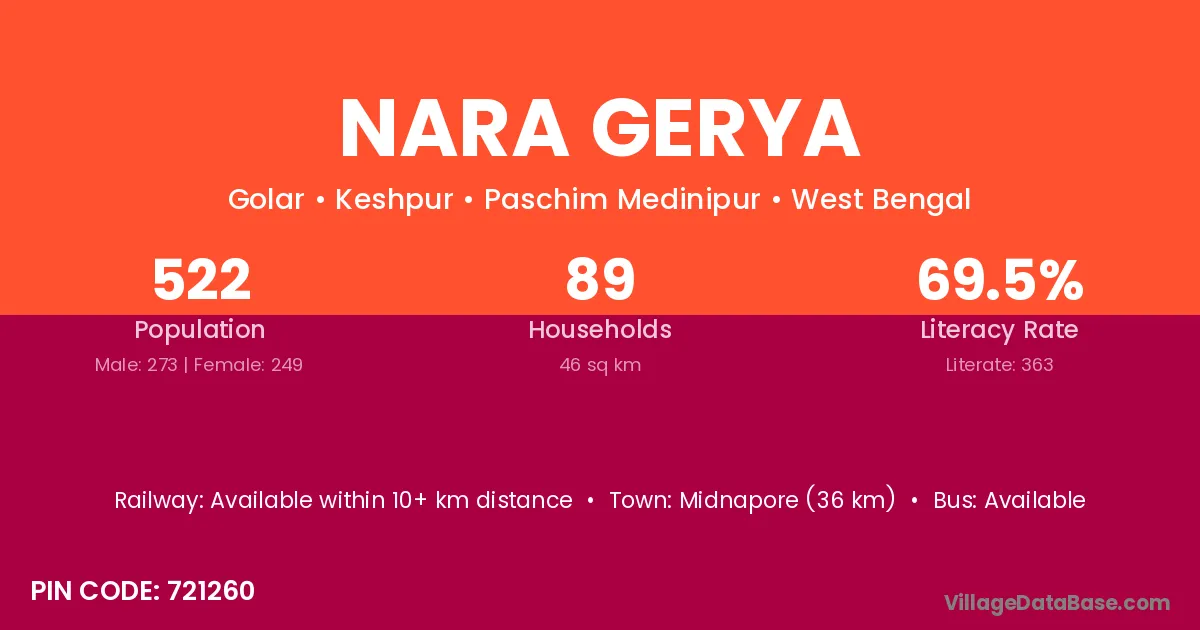 Nara Gerya village is located in the Keshpur Subdivision of the Paschim Medinipur district in West Bengal.