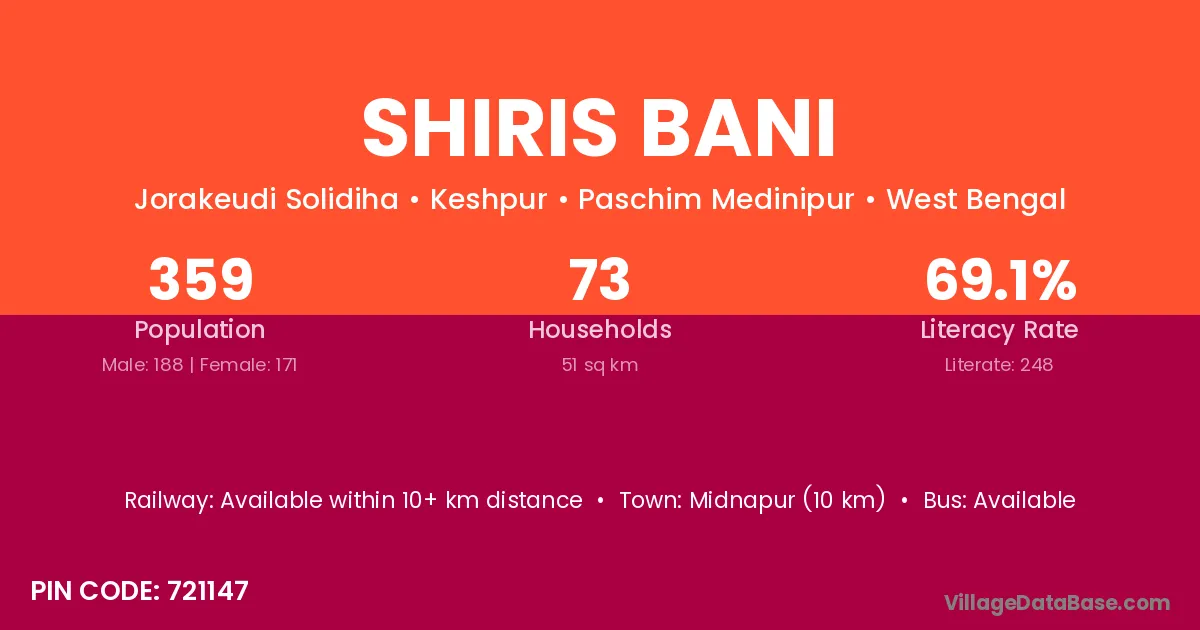 Shiris Bani village is located in the Keshpur Subdivision of the Paschim Medinipur district in West Bengal.