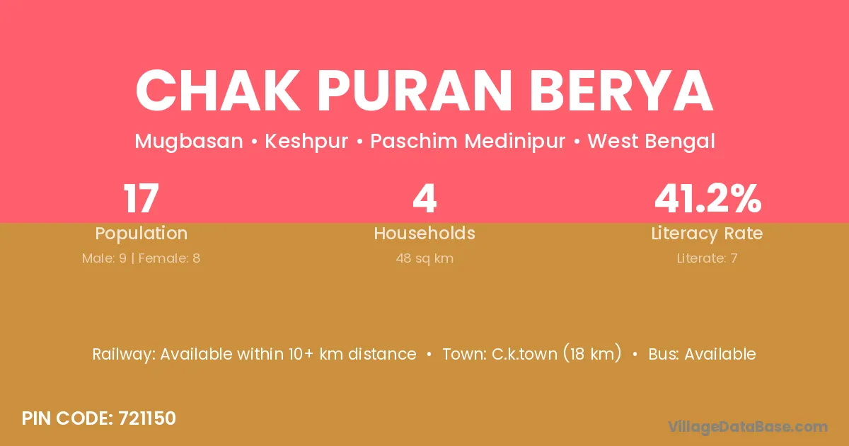 There are approximately 4 households in Chak Puran Berya village.