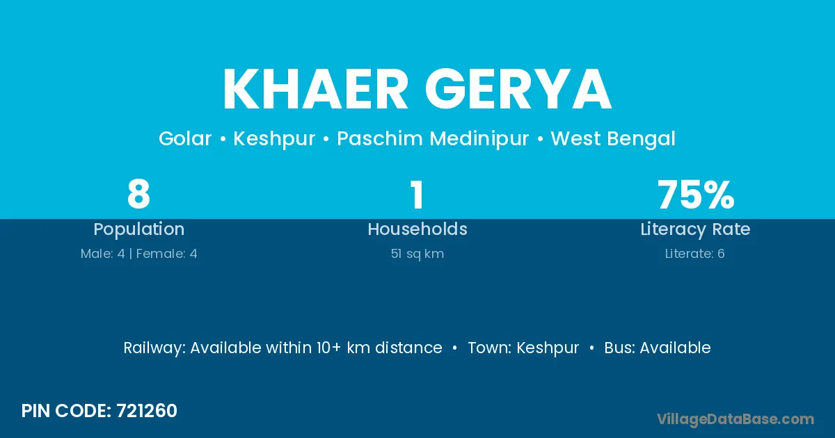 Keshpur is the nearest town to Khaer Gerya village for major economic activities