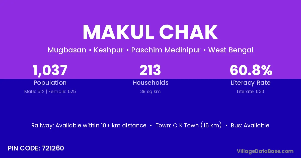 According to Census 2011 information, the village code of Makul Chak village is 721260.
