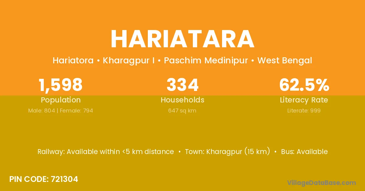Kharagpur (15 km) is the nearest town to Hariatara village for major economic activities and is located approximately 15 km away.