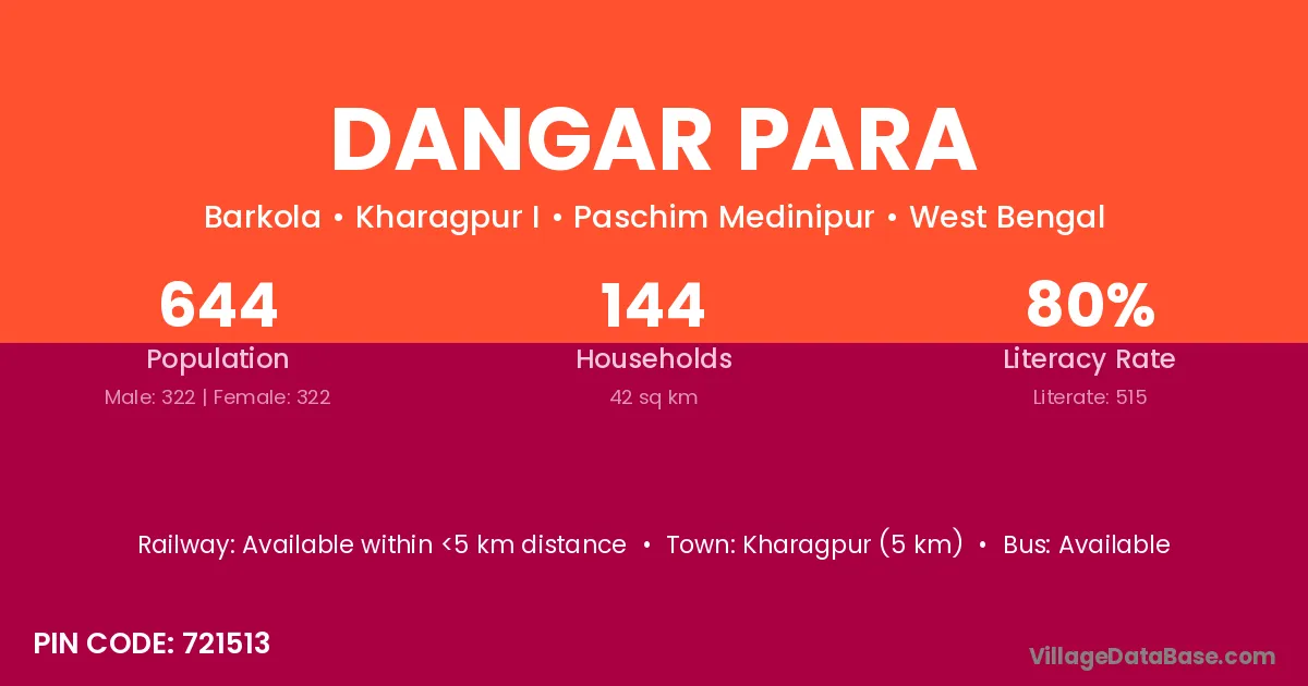 Kharagpur (5 km) is the nearest town to Dangar Para village for major economic activities and is located approximately 5 km away.