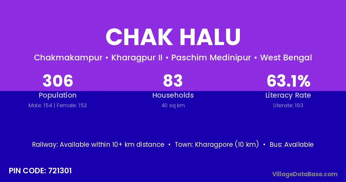 According to Census 2011 information, the village code of Chak Halu village is 721301.