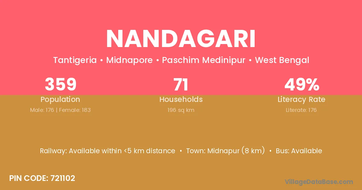 Midnapur (8 km) is the nearest town to Nandagari village for major economic activities and is located approximately 8 km away.