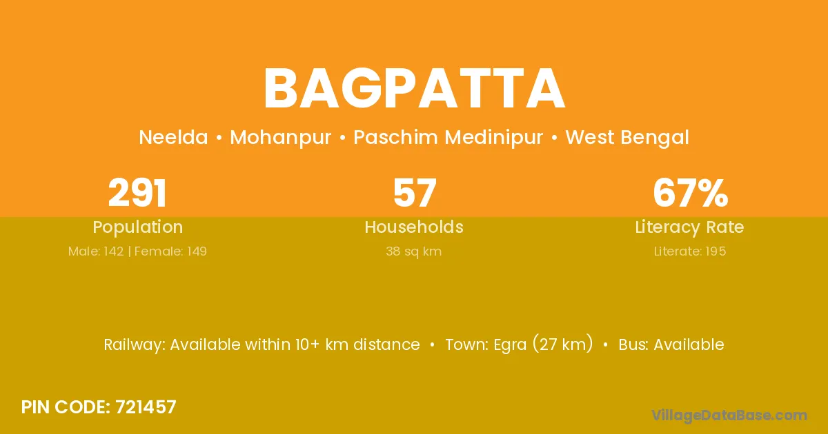 Egra (27 km) is the nearest town to Bagpatta village for major economic activities and is located approximately 27 km away.