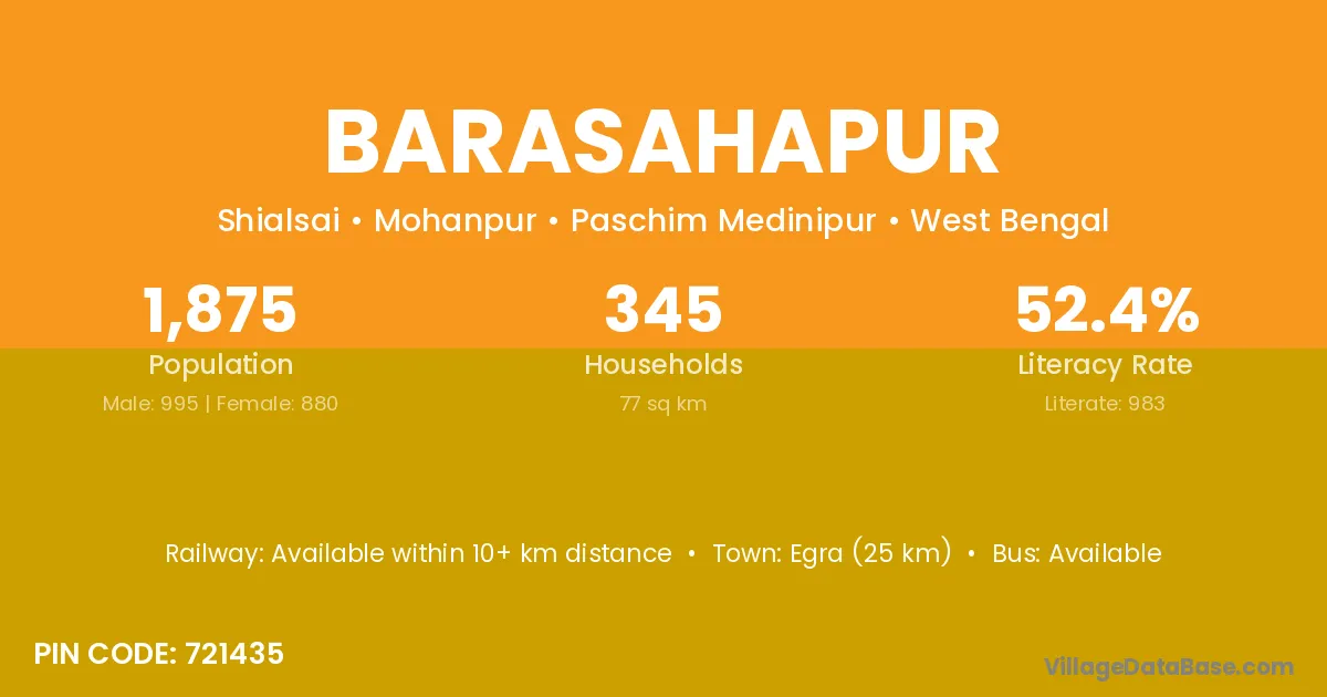 Egra (25 km) is the nearest town to Barasahapur village for major economic activities and is located approximately 25 km away.