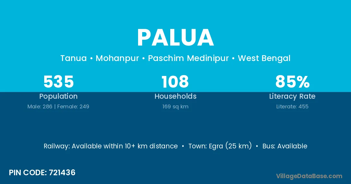 Egra (25 km) is the nearest town to Palua village for major economic activities and is located approximately 25 km away.