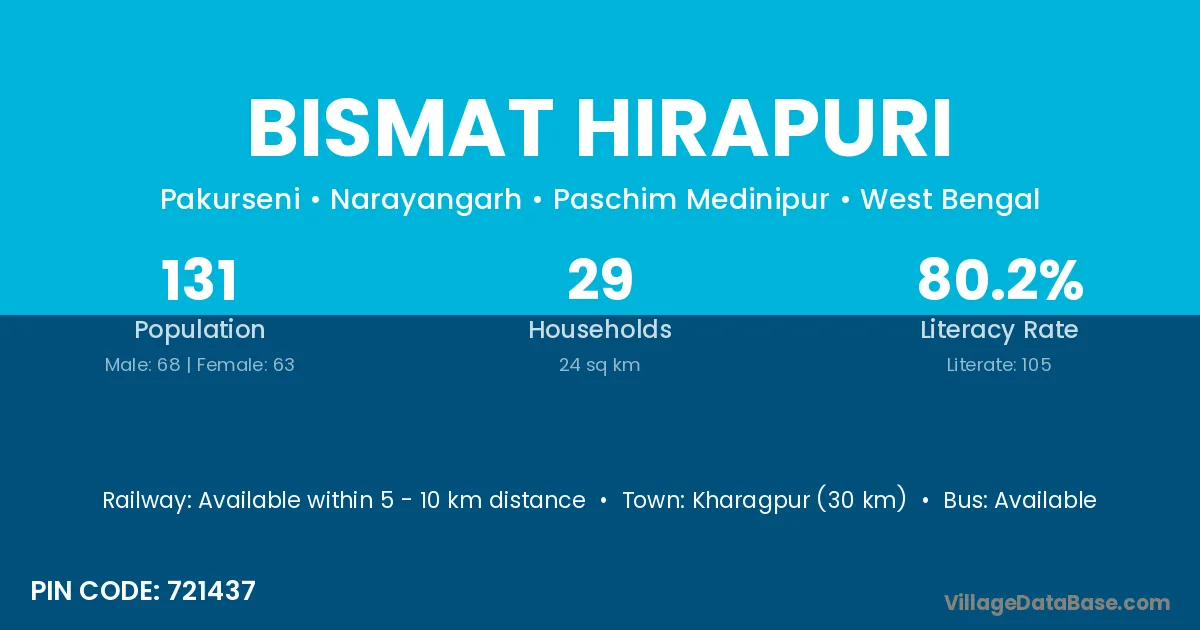 According to Census 2011 information, the village code of Bismat Hirapuri village is 721437.