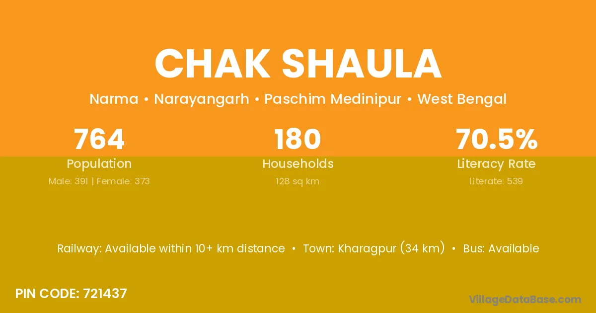 Kharagpur (34 km) is the nearest town to Chak Shaula village for major economic activities and is located approximately 34 km away.