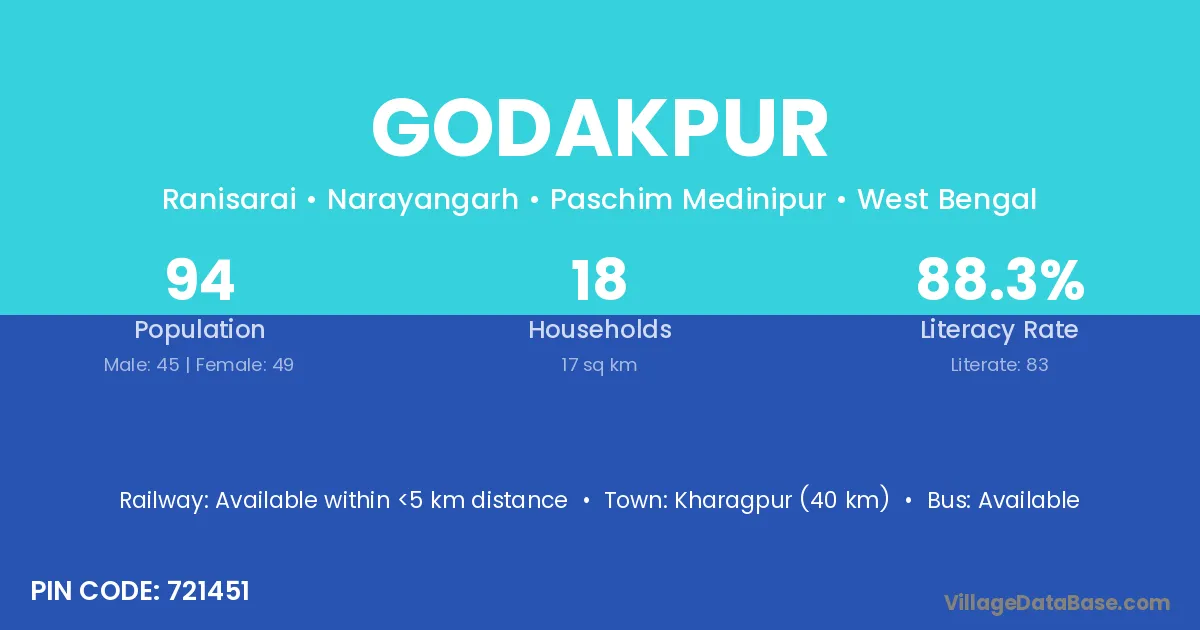 Godakpur village is located in the Narayangarh Subdivision of the Paschim Medinipur district in West Bengal.