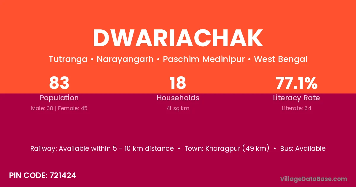 Dwariachak village is located in the Narayangarh Subdivision of the Paschim Medinipur district in West Bengal.