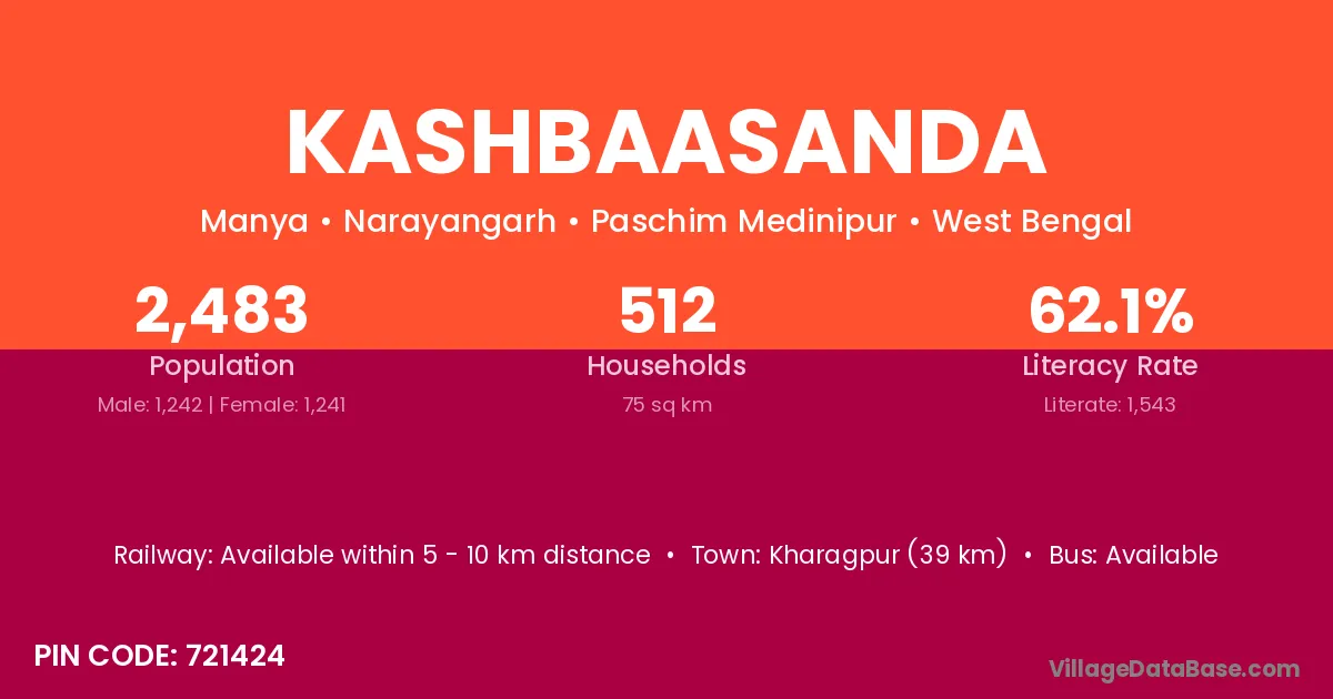 According to Census 2011 information, the village code of Kashbaasanda village is 721424.