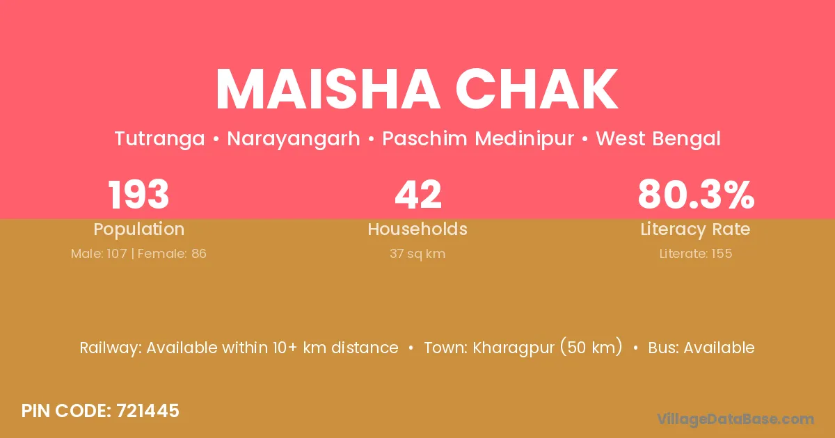 Maisha Chak village is located in the Narayangarh Subdivision of the Paschim Medinipur district in West Bengal.