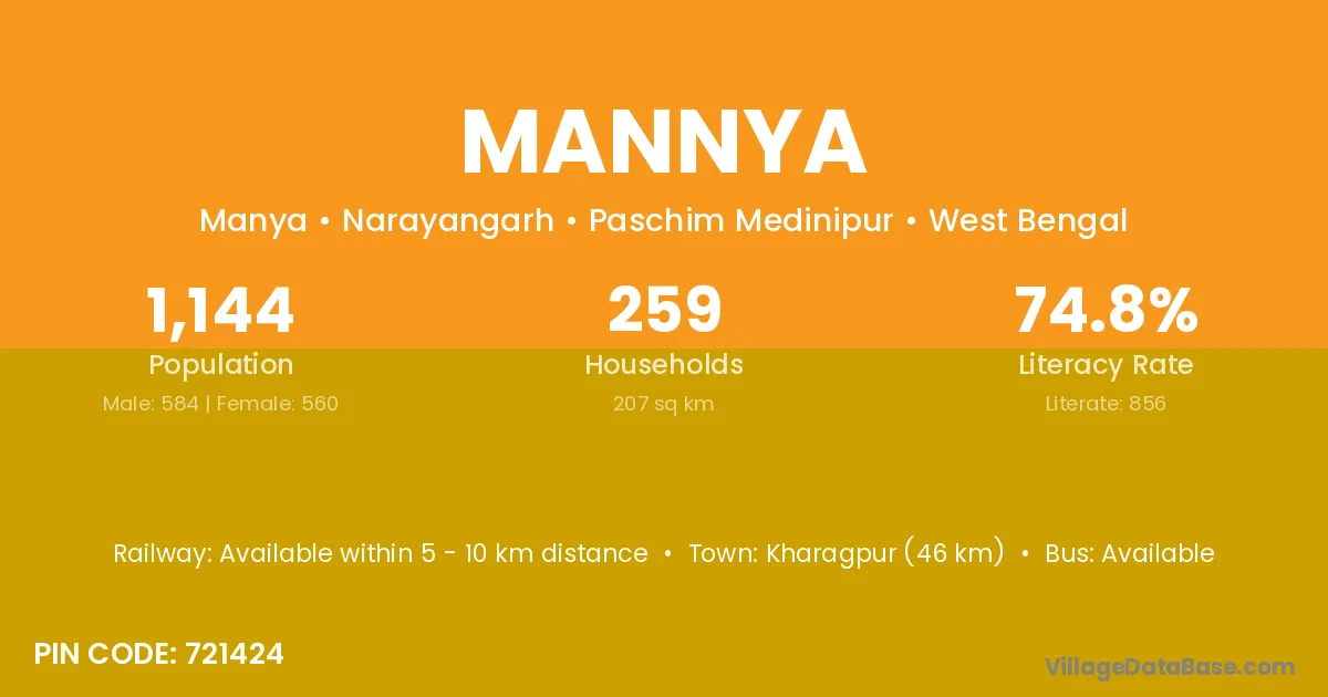 Mannya village is located in the Narayangarh Subdivision of the Paschim Medinipur district in West Bengal.