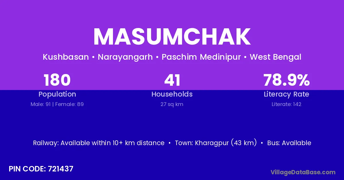 Kharagpur (43 km) is the nearest town to Masumchak village for major economic activities and is located approximately 43 km away.