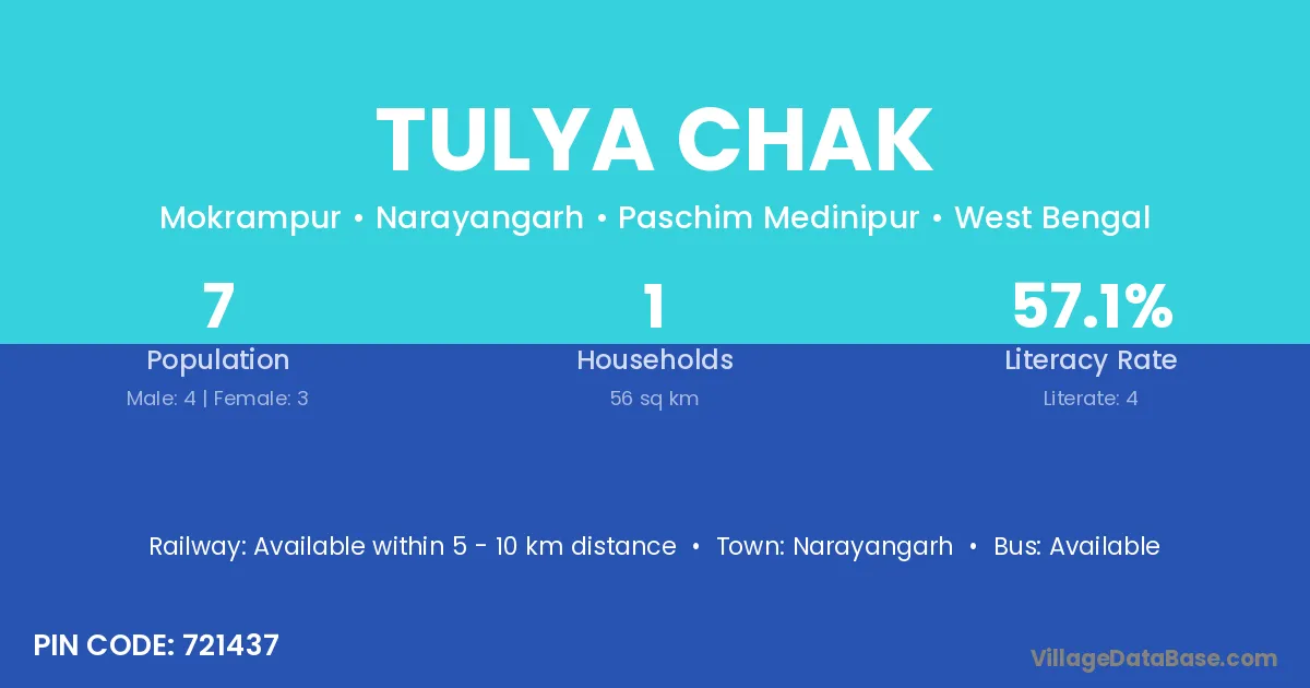 Tulya Chak village is located in the Narayangarh Subdivision of the Paschim Medinipur district in West Bengal.