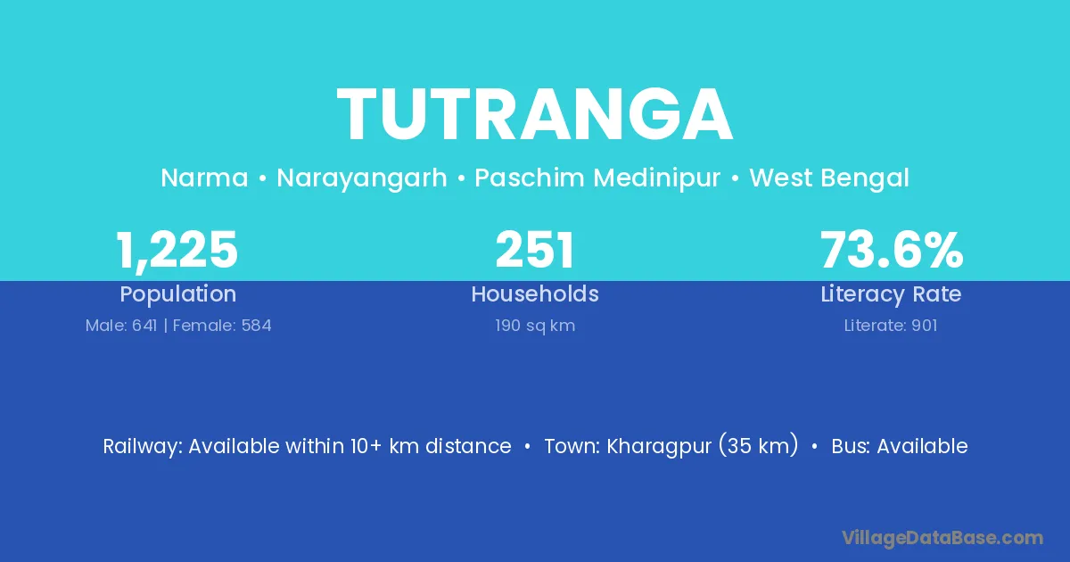 Kharagpur (35 km) is the nearest town to Tutranga village for major economic activities and is located approximately 35 km away.