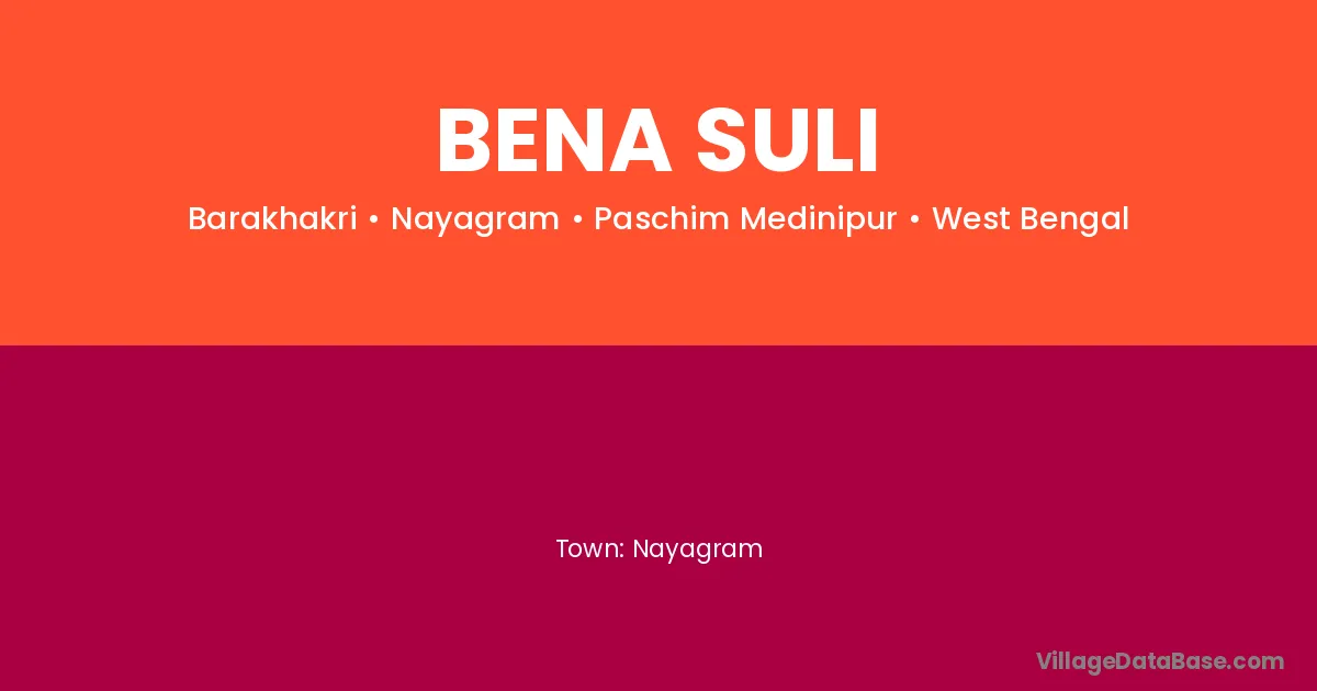 Bena Suli village is located in the Nayagram Subdivision of the Paschim Medinipur district in West Bengal.