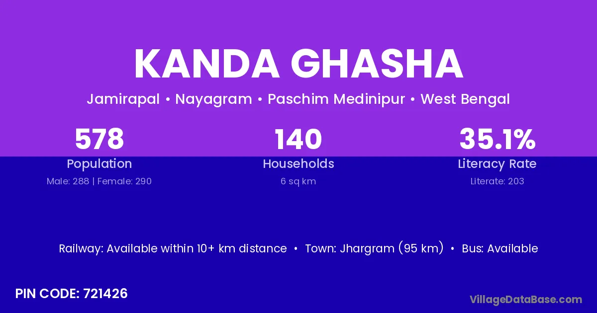 According to Census 2011 information, the village code of Kanda Ghasha village is 721426.