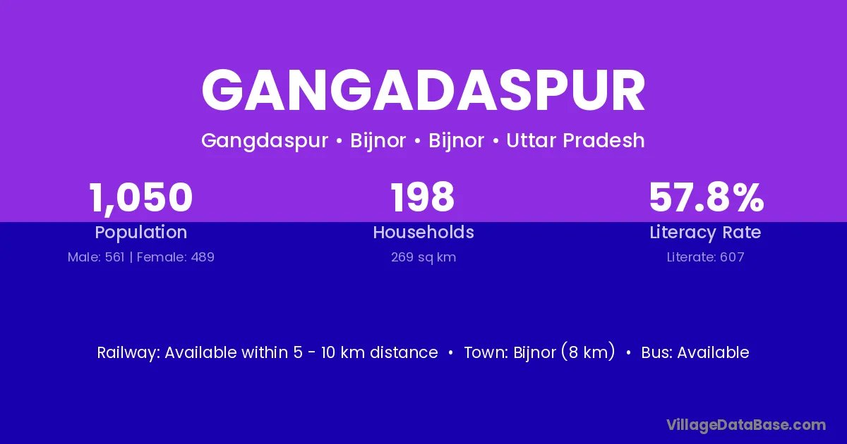 Gangadaspur village has a total population of 546 people, of which 279 are males and 267 are females.