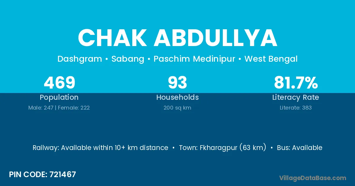 Chak Abdullya village is located in the Sabang Subdivision of the Paschim Medinipur district in West Bengal .