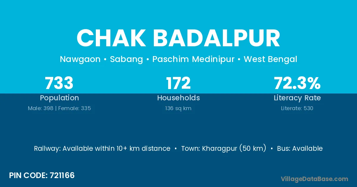 Chak Badalpur village is located in the Sabang Subdivision of the Paschim Medinipur district in West Bengal.